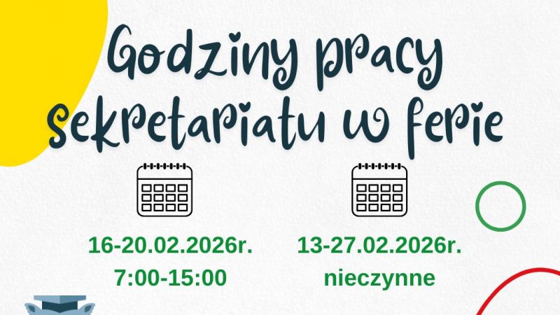Godziny pracy sekretariatu w czasie ferii zimowych