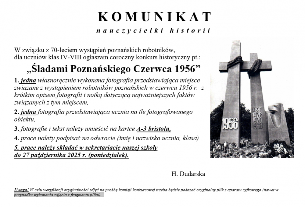 Aktualności / listopad 2025 7 listopada 2025 Wyniki konkursu historycznego - Śladami Poznańskiego Czerwca 1956 r. Wyniki konkursu historycznego. Więcej Kategorie Terminarz roku szkolenego (8) Zebrania rady rodziców (1) Rekrutacja (3) Gość społecznej Dwójki (70) Odyseja umysłu (12) Konkursy (18) Biblioteka (20) Język niemiecki (25) Język angielski (26) Język hiszpański (27) Świetlica (20) Edukacja wczesnoszkolna (60) Sukcesy (12) Samorząd Uczniowski (30) Archiwum listopad 2025 (1) październik 2025 (3) wrzesień 2025 (4) sierpień 2025 (2) czerwiec 2025 (1) maj 2025 (1) kwiecień 2025 (10) marzec 2025 (7) luty 2025 (1) styczeń 2025 (2) Najczęściej czytane Drzwi Otwarte Zakończenie roku szkolnego - klasy 1-3 Plan lekcji Zakończenie roku szkolnego - klasy 8 Plan lekcji - rok szkolny 2021/2022 Plan lekcji 2024/2025 Rodzinne Warsztaty Świąteczne DZIEŃ ZIEMI Rozpoczęcie roku szkolnego 2020/2021 Finał Odysei Umysłu